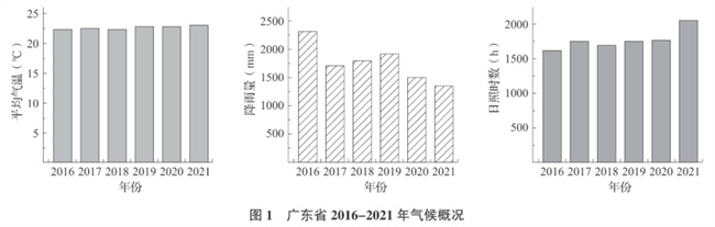 廣東(dong)省2016-2021年(nian)(nian)的(de)(de)(de)年(nian)(nian)平(ping)均氣溫穩(wen)定(ding)(ding)在22.3~23.0℃之間(jian),日(ri)照(zhao)時數(shu)除2021年(nian)(nian)外,其他年(nian)(nian)份的(de)(de)(de)日(ri)照(zhao)時數(shu)比(bi)較接近,整體氣候(hou)(hou)條件比(bi)較穩(wen)定(ding)(ding)(圖1)。2016-2021年(nian)(nian)廣東(dong)省審定(ding)(ding)水稻(dao)品種(zhong)(zhong)的(de)(de)(de)各(ge)年(nian)(nian)份每hm²平(ping)均產(chan)量分別為7151.50kg、7342.29kg、7319.29kg、7110.98kg、7190.27kg、7114.89kg,同年(nian)(nian)相(xiang)比(bi)區域試(shi)驗對(dui)照(zhao)品種(zhong)(zhong),增(zeng)產(chan)幅度(du)分別為2.16%、2.86%、3.98%、4.23%、3.83%、3.25%,共有370個水稻(dao)品種(zhong)(zhong)比(bi)對(dui)照(zhao)增(zeng)產(chan),占(zhan)審定(ding)(ding)品種(zhong)(zhong)總數(shu)的(de)(de)(de)79.40%,96個水稻(dao)品種(zhong)(zhong)相(xiang)對(dui)對(dui)照(zhao)減(jian)產(chan),占(zhan)審定(ding)(ding)品種(zhong)(zhong)總數(shu)的(de)(de)(de)20.60%。除2020年(nian)(nian)審定(ding)(ding)品種(zhong)(zhong)產(chan)量變(bian)異(yi)系數(shu)為11.14%外,其他年(nian)(nian)份審定(ding)(ding)的(de)(de)(de)水稻(dao)品種(zhong)(zhong)產(chan)量變(bian)異(yi)系數(shu)均小于(yu)10%,各(ge)年(nian)(nian)份審定(ding)(ding)的(de)(de)(de)水稻(dao)品種(zhong)(zhong)產(chan)量相(xiang)對(dui)平(ping)穩(wen),氣候(hou)(hou)條件對(dui)審定(ding)(ding)品種(zhong)(zhong)的(de)(de)(de)產(chan)量影響較小(表(biao)3)。