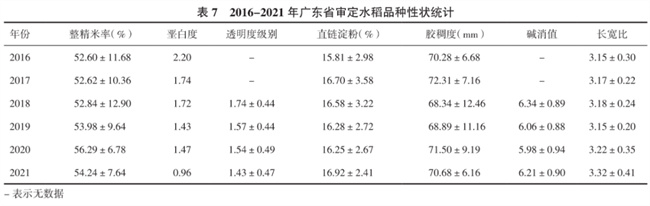 廣東省水稻種(zhong)(zhong)(zhong)(zhong)植和(he)育(yu)種(zhong)(zhong)(zhong)(zhong)在我國(guo)具(ju)有(you)(you)重(zhong)要的(de)(de)(de)地位,2021年(nian)(nian)廣東(dong)省(sheng)水(shui)稻播種(zhong)(zhong)(zhong)(zhong)面積和(he)總(zong)產量分別為182.74萬(wan)hm²和(he)1104.4萬(wan)t,均(jun)居全國(guo)第8位。廣東(dong)省(sheng)育(yu)種(zhong)(zhong)(zhong)(zhong)水(shui)平(ping)處(chu)于全國(guo)前列(lie),審定(ding)(ding)通(tong)過的(de)(de)(de)水(shui)稻品(pin)(pin)(pin)種(zhong)(zhong)(zhong)(zhong)具(ju)有(you)(you)高產、優質、抗(kang)性(xing)好、推(tui)廣面積大(da)等特(te)(te)點。自1978年(nian)(nian)實行品(pin)(pin)(pin)種(zhong)(zhong)(zhong)(zhong)審定(ding)(ding)制(zhi)度(du)以來至2021年(nian)(nian),有(you)(you)1135個(ge)次品(pin)(pin)(pin)種(zhong)(zhong)(zhong)(zhong)通(tong)過廣東(dong)省(sheng)或國(guo)家(jia)品(pin)(pin)(pin)種(zhong)(zhong)(zhong)(zhong)審定(ding)(ding),迄今已有(you)(you)常(chang)規稻廣陸矮4號、窄葉青8號、特(te)(te)青2號、黃華占(zhan)及雜(za)交稻汕優3550、II優3550、博(bo)優998、天優998等36個(ge)品(pin)(pin)(pin)種(zhong)(zhong)(zhong)(zhong)推(tui)廣面積超(chao)66.7萬(wan)hm²。“十三(san)五”以來,伴隨居民(min)消費(fei)市場升級(ji)、生物(wu)育(yu)種(zhong)(zhong)(zhong)(zhong)前沿技術加速發(fa)展、水(shui)稻種(zhong)(zhong)(zhong)(zhong)植結構改變等種(zhong)(zhong)(zhong)(zhong)業形勢變化,廣東(dong)省(sheng)審定(ding)(ding)通(tong)過的(de)(de)(de)水(shui)稻品(pin)(pin)(pin)種(zhong)(zhong)(zhong)(zhong)特(te)(te)性(xing)有(you)(you)所改變。本文根(gen)據(ju)國(guo)家(jia)水(shui)稻數據(ju)中(zhong)心統計(ji)(ji)數據(ju),統計(ji)(ji)分析2016-2021年(nian)(nian)廣東(dong)省(sheng)審定(ding)(ding)通(tong)過水(shui)稻品(pin)(pin)(pin)種(zhong)(zhong)(zhong)(zhong)的(de)(de)(de)農(nong)藝性(xing)狀(zhuang)、米質和(he)抗(kang)性(xing)等,旨在為水(shui)稻新品(pin)(pin)(pin)種(zhong)(zhong)(zhong)(zhong)選育(yu)提(ti)供參考。
