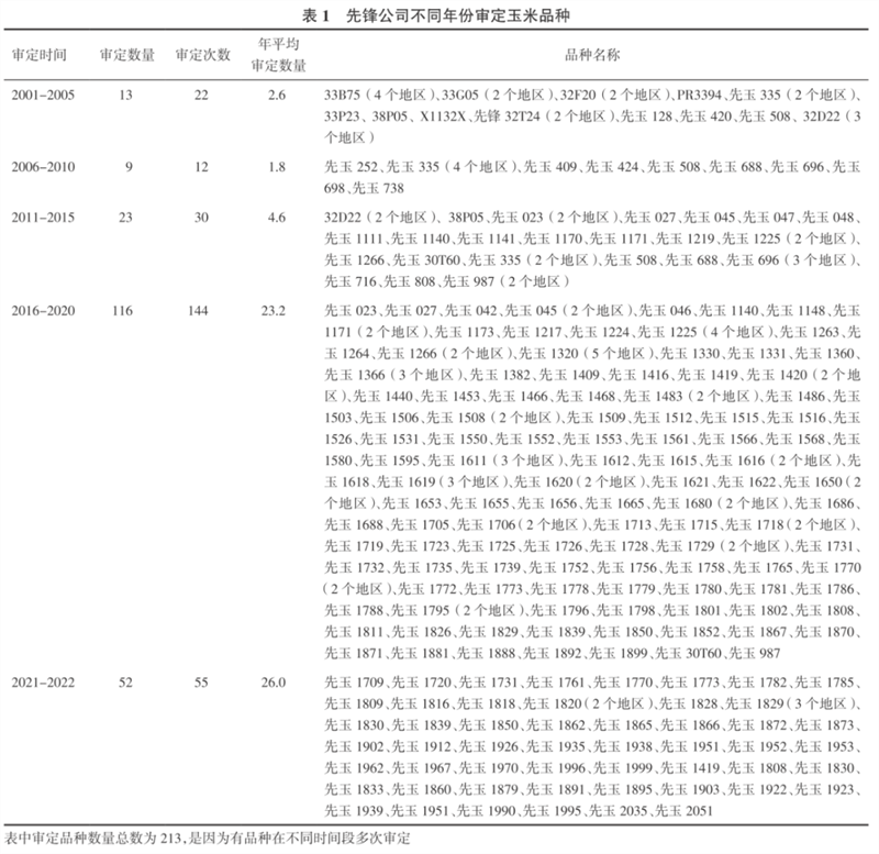 22年來先鋒種子公司在我國審定玉米品種分析