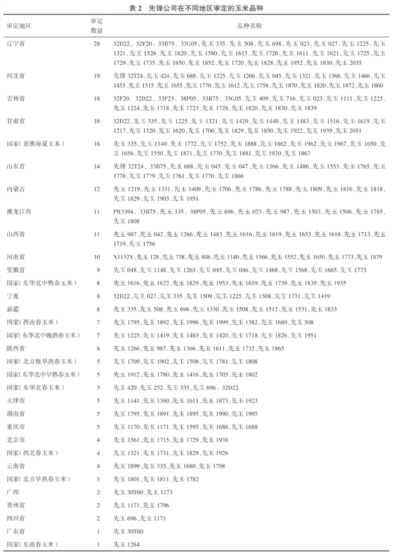 先鋒公司在不同地區審定的玉米品種分析