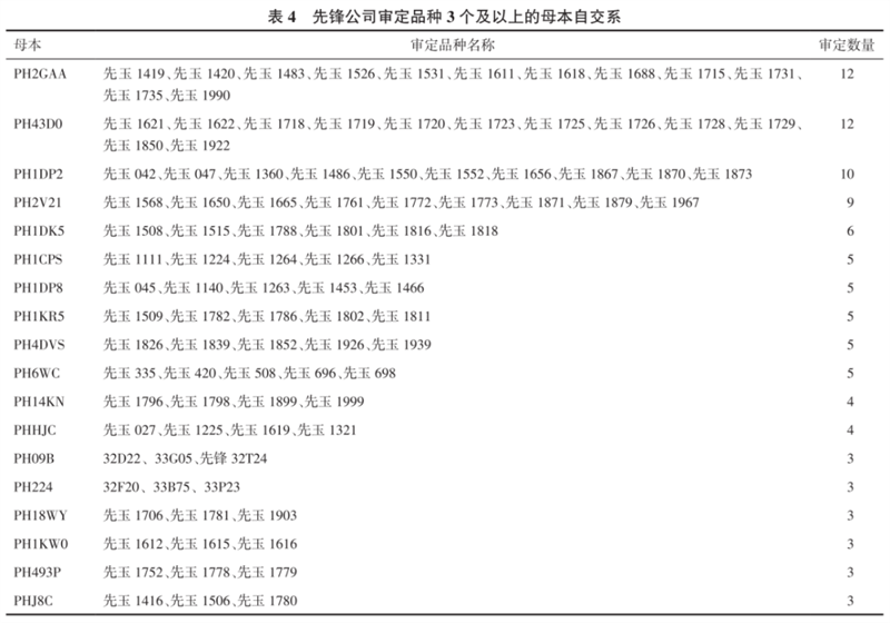 先鋒公司審定品種親本分析