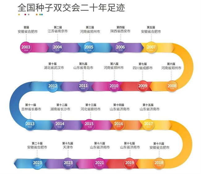 20年來(lai),大會穩扎穩打,從(cong)安(an)徽合(he)肥起步,一路走過江(jiang)蘇南(nan)京(jing)、河(he)南(nan)鄭州、陜西(xi)西(xi)安(an)、四川成(cheng)都(dou)、山東(dong)青島、湖北武漢、吉林長(chang)春、湖南(nan)長(chang)沙、河(he)北廊坊、山東(dong)濟(ji)南(nan)、天津(jin)等地。從(cong)南(nan)到北,從(cong)東(dong)部沿(yan)海到西(xi)部邊陲,推進種業振興的巨大合(he)力(li)已然形成(cheng)。