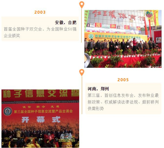 2003年,首屆全國(guo)(guo)種子(zi)信(xin)息交(jiao)流(liu)與產(chan)品(pin)交(jiao)易(yi)會(簡稱“全國(guo)(guo)種子(zi)雙交(jiao)會”)在安(an)徽合肥舉(ju)行,宣貫法規制度(du)、解讀(du)種業(ye)(ye)政策、引(yin)領(ling)產(chan)業(ye)(ye)方向、交(jiao)流(liu)種業(ye)(ye)信(xin)息、推廣種業(ye)(ye)成(cheng)果。航程從(cong)這里開啟。