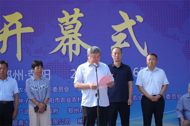 河南省種業發展中心主任馬運糧代表河南省農業農村廳,向參與活動的各位專家和種業同仁表示熱烈的歡迎!他在講話中指出,糧安天下,種鑄基石,河南不僅是農業大省,也是種業大省,是我國種業科技創新和種業市場最具活力的省份,農作物育種創新能力居全國領先水平。他說,農作物新品種展示示范觀摩是品種審定后大面積種植前的重要環節,是向農民宣傳推廣優良新品種的重要手段,是引導農民看禾選種、科學用種的田間展臺,是科研育種單位展示最新育種成果、交流最新育種動態的信息平臺。希望通過本次活動,聚焦種業發展大局,鞏固農業振興良策,共同促進河南現代種業高質量發展。為保障糧食安全,為中原更加出彩作出更大貢獻。開幕式最后由河南省種業發展中心主任馬運糧宣布活動開幕。