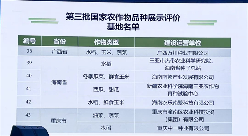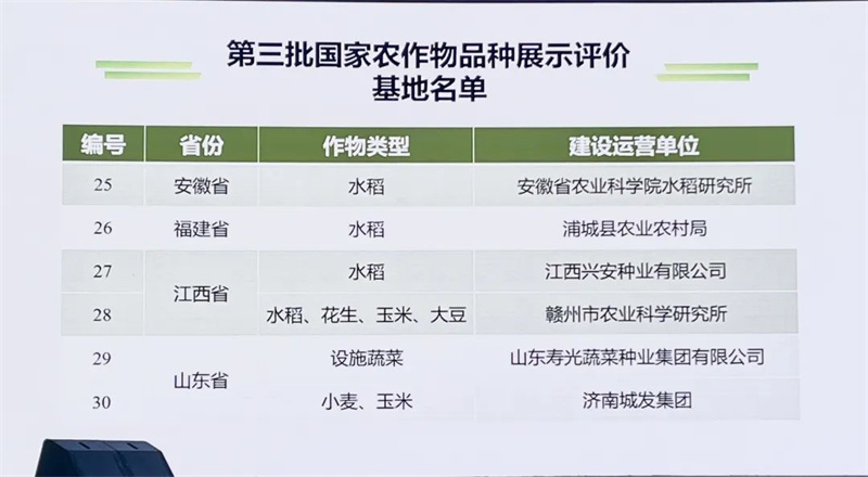全(quan)國農技中心品種登記處處長邱軍,依據基(ji)地布(bu)局、省(sheng)級推薦、實地考(kao)察和(he)專家審核(he)結果,公布(bu)了第三批國家農作物展示評價基(ji)地認(ren)定名單。