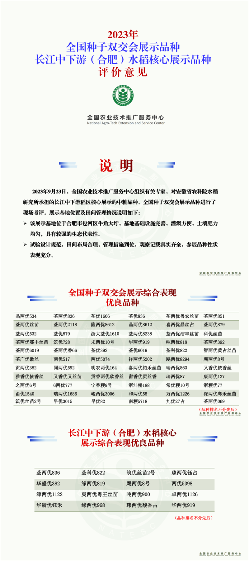 國家農(nong)作物品種審定委員會(hui)稻專業委員會(hui)主任(ren)、湖南省農(nong)科院副院長許靖(jing)波,依(yi)據田間種植調(diao)查(cha)和(he)專家現(xian)場評審情況,公布了本屆雙交會(hui)水稻田間種植品種展示評價(jia)結果。