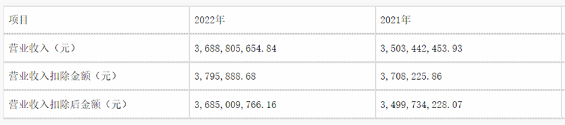 隆平高科2022年實現營業總收入36.89億元,同比增長5.29%;歸母凈利潤虧損8.76億元,上年同期盈利6244.74萬元;扣非凈利潤虧損8.17億元,上年同期虧損4.48億元。數據統計顯示,隆平高科近三年營業總收入復合增長率為5.63%。
