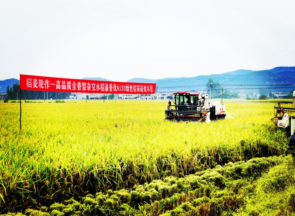 “經測產,‘渝香優8133’示范片算術平均畝產 666.7 公斤,較當地非示范片顯著增產。”日前,由中國水稻研究所、四川省農業技術推廣總站等單位農業科研人員組成的專家組,對四川省梓潼縣稻麥輪作——高品質全香型雜交水稻‘渝香優8133’綠色輕簡高效示范片進行了現場測產驗收。