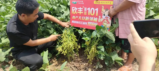 在今年春季干旱、7到8月份又多雨寡照的情況下,圣豆101畝產依然能夠突破300公斤,再次證明了該品種產量及抗性方面的過硬表現,為更多農戶帶來高收益的同時,穩定的產量表現為國家大豆擴面增產、推動產能提升、保障國家糧食安全提供了重要的科技支撐,也為大豆向實現提高單產、提高品質、提高效益的振興目標交出了又一份優秀的答卷。