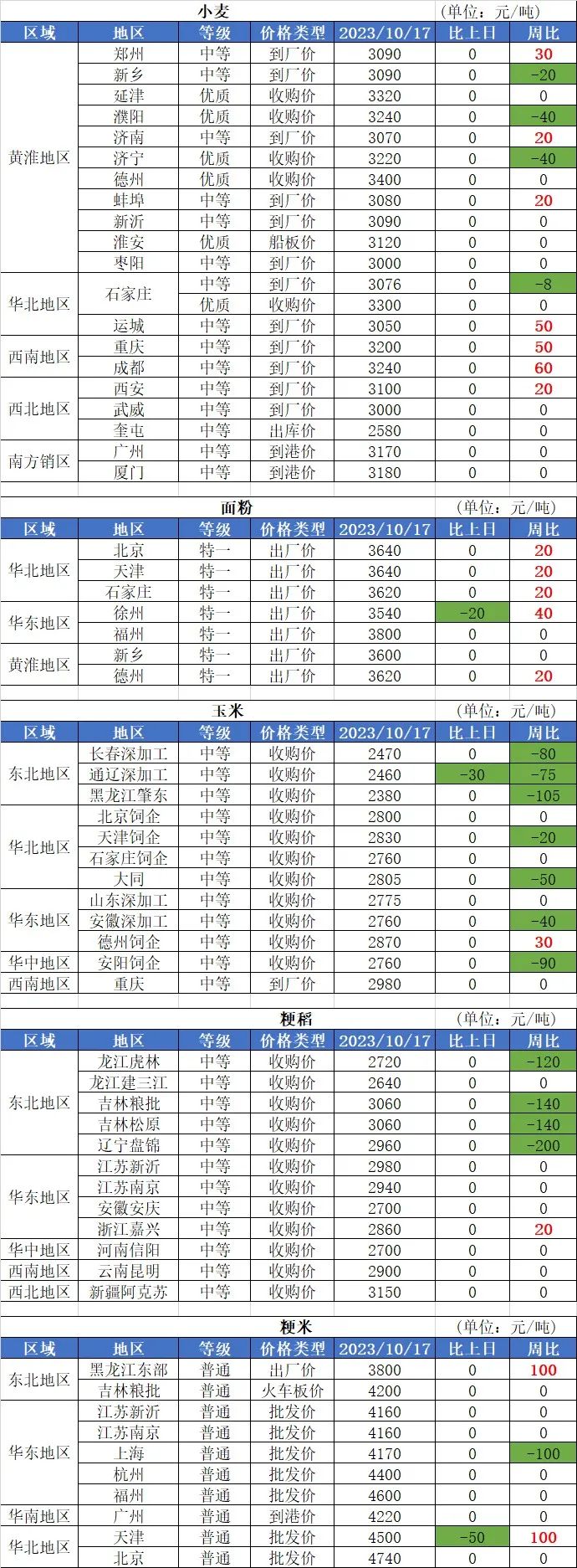 2、10月17日玉米價格小幅下跌,其中:南北港口、南方銷區玉米價格小幅下跌,跌幅10-50元/噸;華北地區、東北地區玉米價格基本穩定,局部價格小幅下跌,跌幅10-30元/噸。