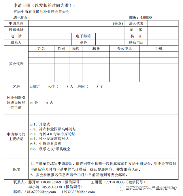 1)首屆中(zhong)原(yuan)農谷國際種業(ye)峰會(hui)參會(hui)報名表