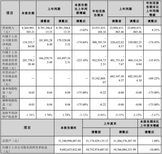 公司第三季度實現營收82.65億元(yuan)(yuan),同比下(xia)降5.02%;歸屬于上市公司股(gu)東的凈利潤虧損1.34億元(yuan)(yuan),同比由盈轉虧。