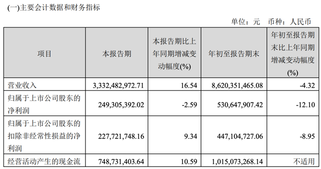 其中,2023年第(di)三季(ji)度(du),單(dan)季(ji)度(du)主營收入10.48億(yi)元,同(tong)比(bi)上升9.83%;單(dan)季(ji)度(du)歸母(mu)凈利(li)潤3.34億(yi)元,同(tong)比(bi)下降6.56%。