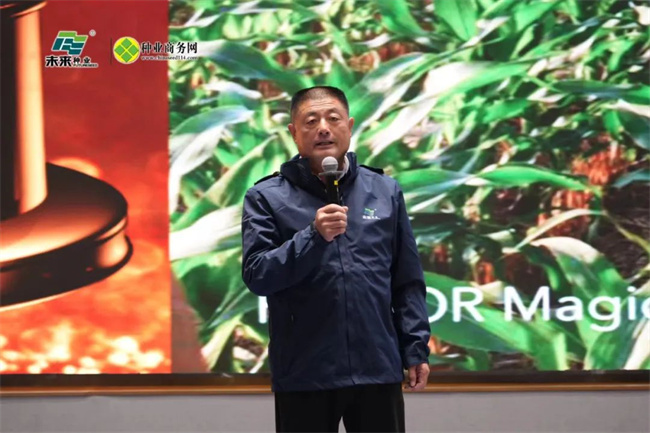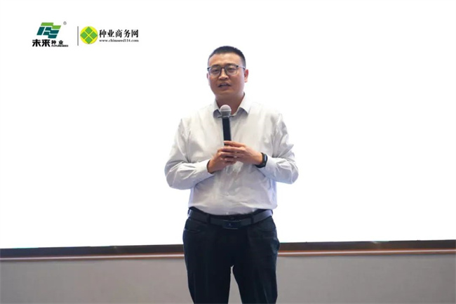未來種業副總經理苑磊在致詞中以《打造黃淮海玉米種業品牌企業》為題做精彩報告。報告圍繞玉米品種管理核心,從育種目標、市場導向、品種推廣、質量管理體系、風險控制等多個維度解讀精細化管理過程,深入地闡述了如何通過深耕種業關鍵技術,錨定科技發展目標,深挖品種價值,繼續提升“未來品牌”在黃淮海知名度。最后,苑總表示,公司期待與全體合作伙伴攜手并肩,共同在深耕種業中搶抓新機遇、在務實合作中開啟新篇章、在優勢互補中創造新輝煌。