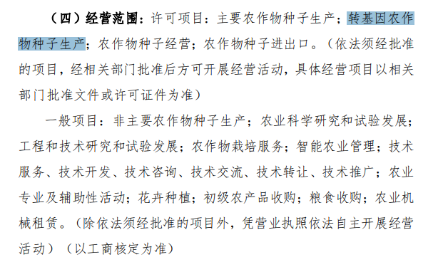 值得注意的是,公告顯示,新公司經營范圍為主要農作物種子生產;轉基因農作物種子生產;農作物種子經營;農作物種子進出口。(依法須經批準的項目,經相關部門批準后方可開展經營活動,具體經營項目以相關部門批準文件或許可證件為準)