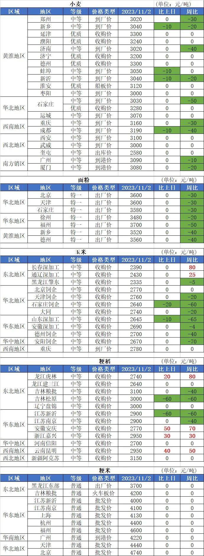 2、11月2日玉米價格互有漲跌,其中:南北港口、東北地區、南方銷區玉米價基本穩定;華北地區玉米價格基本穩定,局部價格小幅下跌,跌幅10-20元/噸。