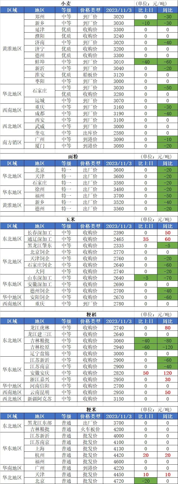 2、11月3日玉米價格互有漲跌,其中:南方銷區玉米價格基本穩定;南北港口、東北地區玉米價基本穩定,局部價格小漲,漲幅10-20元/噸;華北地區玉米價格基本穩定,局部價格略有震蕩,幅度20-40元/噸。