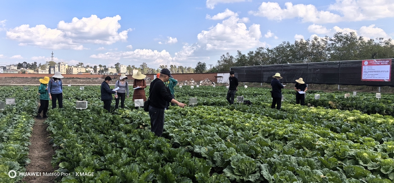 2023年11月7日,云南省種子管理站邀請了省內有關專家在嵩明縣品種展示區開展了現場評價。專家組對117個大白菜、22個結球甘藍品種的抗性、一致性、產量、商品性等重要性狀進行田間現場評價。