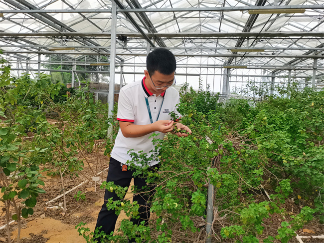 在挖掘野生棉種質資源基因寶庫的過程中,科研人員需要不斷攻克各種難題。一方面是要解決部分棉種“水土不服”的問題。有的野生棉在原生境正常開花結果,但到了這里就很難開花結果,需要科研人員通過人工輔助授粉,扦插或嫁接的方式來進行繁殖。另一方面,還要不斷提高資源圃抵御自然災害的能力。2012年臺風來襲,導致一個棉種植株全部死亡,因此資源圃在2015年新建成了一個溫室,并將室外活體種質資源在溫室中復制保存了一套,并內外都設置了可以聯網采集數據的監控系統,實時監測所有材料的生長狀態。