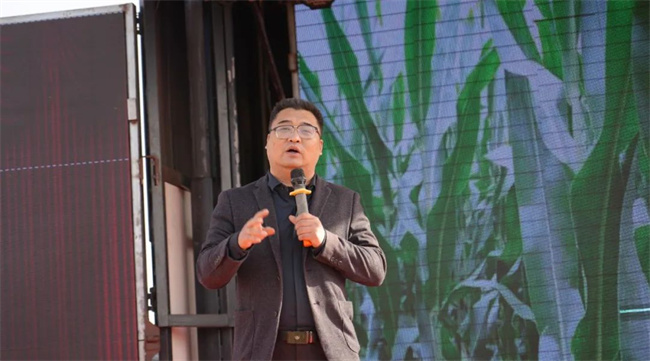 河南喜多收種業有限公司杜峻峰經理講解了九衡517的“噸產”種植方案,分享了近年來九衡517在各地優秀表現,據介紹,九衡517:株高243CM,穗位78CM,是已審定品種中較矮的品種,因此,生產中應關注化學控旺藥劑使用,以免影響產量;氣生根發達,扎地深,扎地牢,抗倒性好;熟期早,脫水快,適合籽粒機收;綜合抗性好,抗逆能力強,特別對穗腐病有較好抗性;耐密性好,穩產,增產潛力大,容重高,品質好。