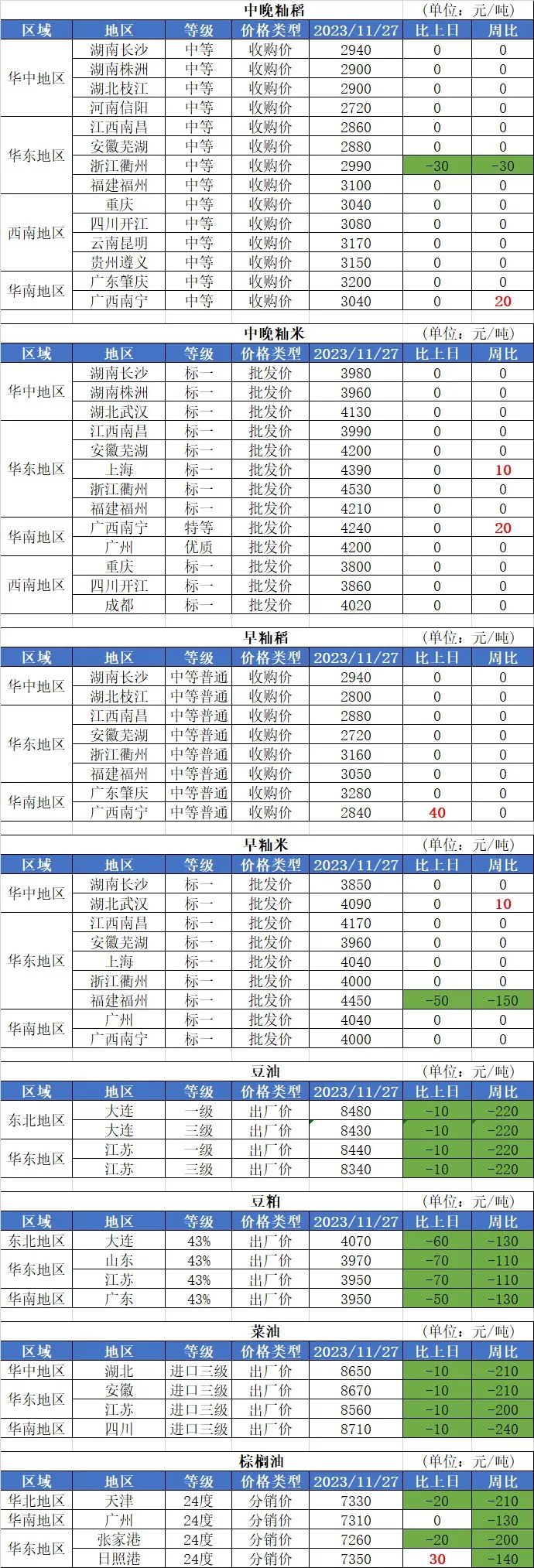 5、近期國內油脂價格震蕩下行,市場購銷謹慎,進入12月國內進口大豆以及菜籽量較多,特別是11月份有部分大豆延遲到港,棕櫚油高庫存的格局持續,三大油脂庫存充足,價格走勢仍取決于南美天氣。