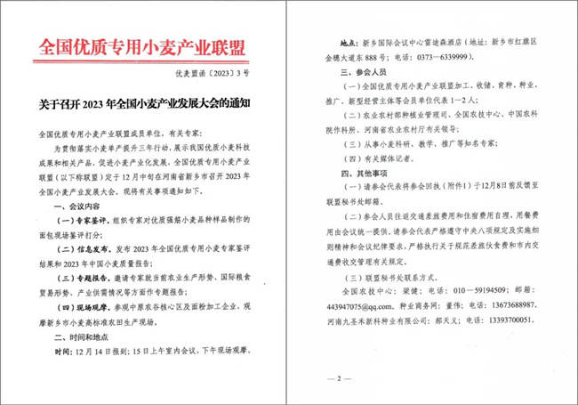 為貫徹落實小麥單產提升三年行動,展示我國優質小麥科技成果和相關產品,促進小麥產業化發展,全國優質專用小麥產業聯盟定于12月14-15日在河南省新鄉市召開2023年全國小麥產業發展大會。