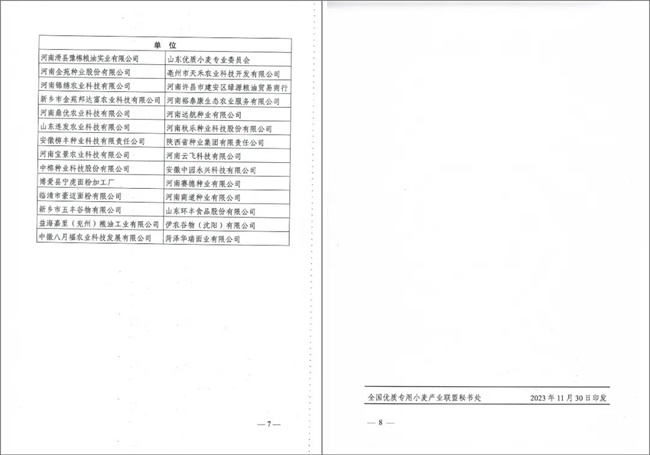 (二)信息發布。發布2023年全國優質專用小麥專家鑒評結果和2023年中國小麥質量報告;
