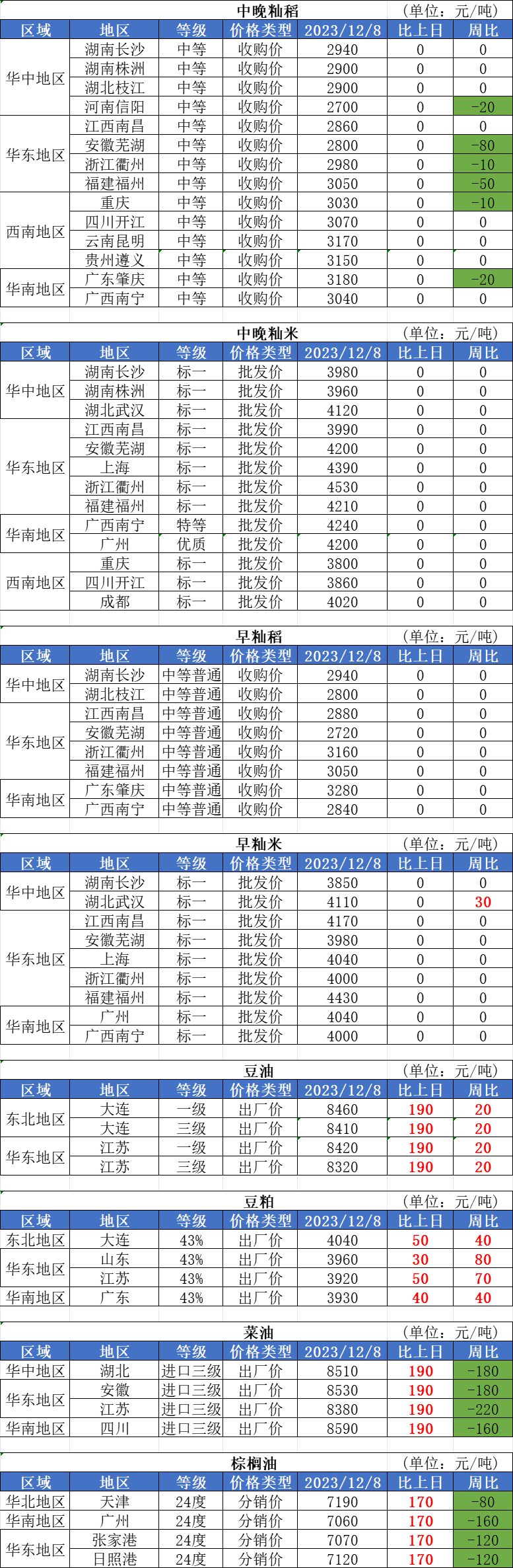 3、截至12月5日,江西省中晚稻累計收購67億斤,同比增加15.1%。其中,國有糧食企業累計收購13.1億斤,同比增加0.7%;其他企業累計收購53.9億斤,同比增加19.2%。