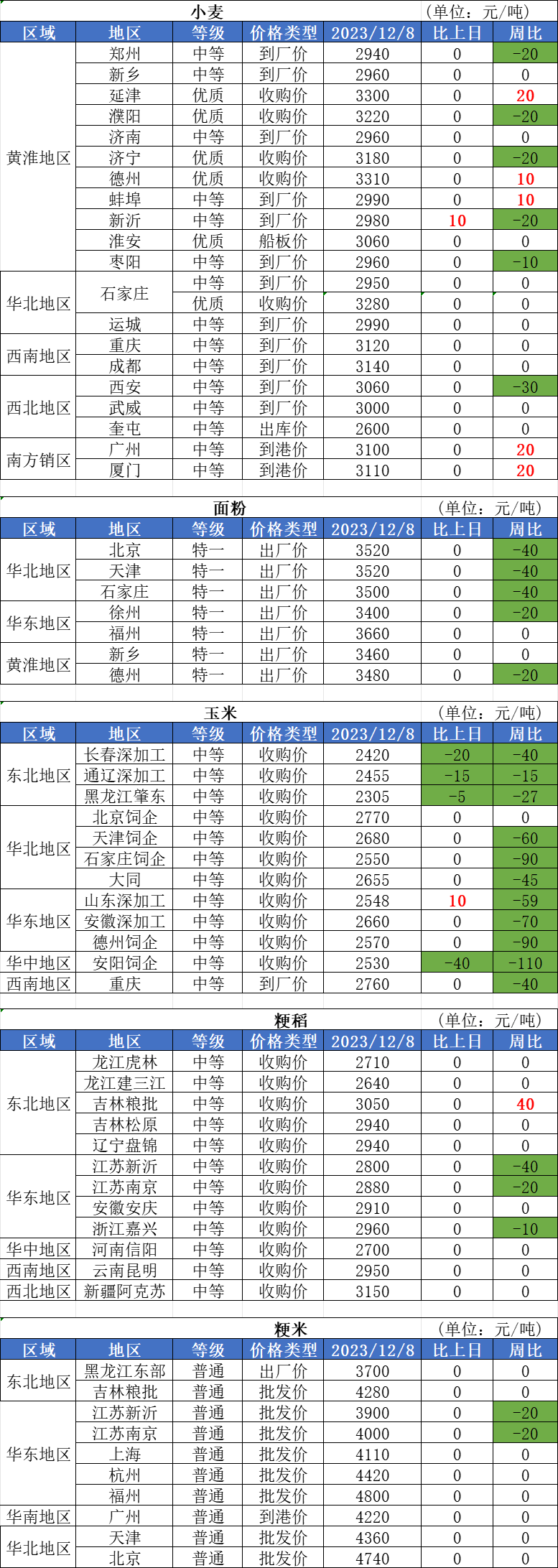 2、12月8日國內玉米價格穩中有跌,其中:華北地區、南方銷區玉米價格基本穩定;南北港口、東北地區玉米價基本穩定,局部價格小跌,跌幅5-20元/噸。