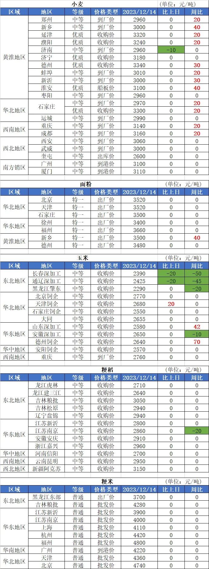 2、12月14日國內玉米價格局部調整,其中:華北地區玉米價格基本穩定;南北港口、南方銷區、東北地區玉米價格基本穩定,局部價格小幅下跌,跌幅10-30元/噸。