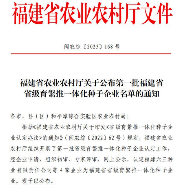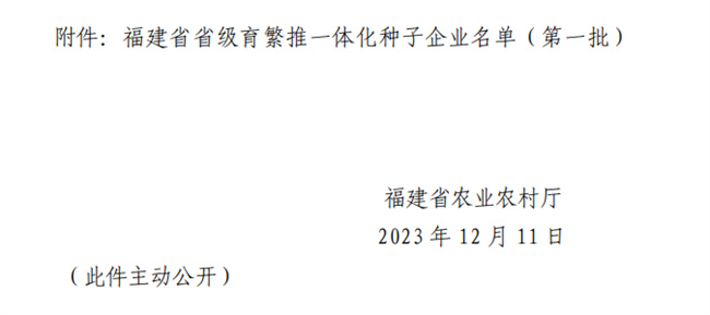 12月11日,福建省農業農村廳公布第一批省級育繁推一體化種子企業名單。