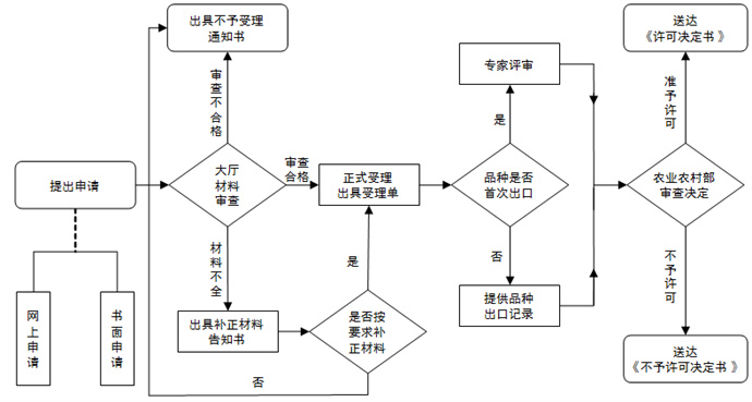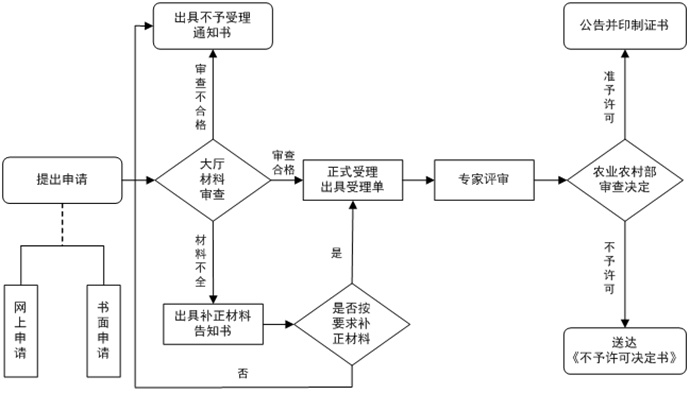 5.農業農村部種業管理司業務處提出審批方案,按程序審簽后辦理批件。