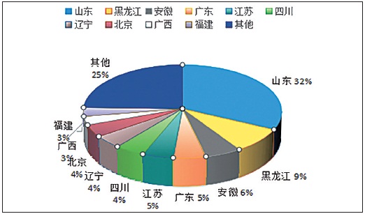 500強企業在地理分布上呈現東部地區領先、西部地區迅速崛起、中部地區穩步發展、東北地區積極跟進的局面。在500強企業中,東部地區281家,占比為56.20%;西部地區76家,占總數的15.20%;中部地區72家,占總數的14.40%;東北地區71家,占總數的14.20%。從省份分布情況來看,山東、黑龍江和安徽三省相對突出,分別以161家、43家和28家的數量位列前三,合計占總數的46.40%。超過20家的省份還包括廣東(25家)、江蘇(24家)、四川(23家)、遼寧(22家)和北京(21家)。