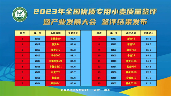 2023年12月15日,全國小麥產(chan)業(ye)發展大會在河南省(sheng)新鄉市召開。“谷神(shen)麥(mai)19”以92.4分的好成績(ji)摘得強(qiang)筋小(xiao)麥(mai)制品(pin)面(mian)包(bao)(bao)鑒(jian)評活(huo)動(dong)桂冠,也(ye)是(shi)繼2020年(2021年疫情原(yuan)因未進行鑒(jian)評)開展的強(qiang)筋小(xiao)麥(mai)制品(pin)面(mian)包(bao)(bao)鑒(jian)評活(huo)動(dong)以來,谷神(shen)麥(mai)19成為連(lian)續三年獲得活(huo)動(dong)評比第一名的小(xiao)麥(mai)品(pin)種(zhong),其品(pin)質超過美國硬(ying)紅(hong)冬麥(mai)。