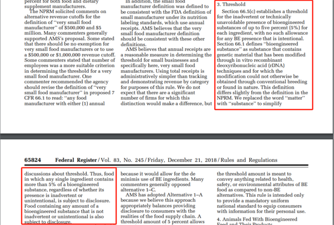 同時,為了保障公眾的知情權和選擇權,絕大多數國家或地區都對轉基因產品實行定量標識,按照閾值進行管理。歐盟為0.9%;韓國、瑞士等國為3%;美國、日本等為5%。也有部分國家或地區實行自愿標識制度,認為轉基因食品與傳統食品是實質等同的,如阿根廷、加拿大等。