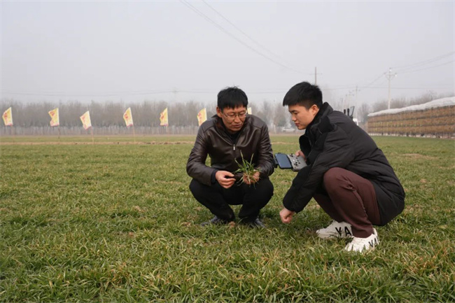 會后,與會核心經銷商到洪育麥2號小麥田進行了觀摩,據介紹,洪育麥2號為2023年河南省審定,分蘗力強,成穗率高,產量三要素協調,穩產高產,增產潛力大;株高適中,抗倒性好;后期熟相好,容重高,品質優。洪育麥2號當前苗期的抗凍性及分蘗能力等直觀優秀表現得到了現場合作伙伴的高度認可和稱贊。