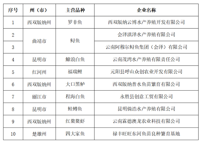3.省級水產種業陣型企業擬推薦名單