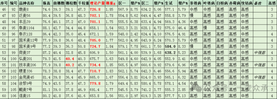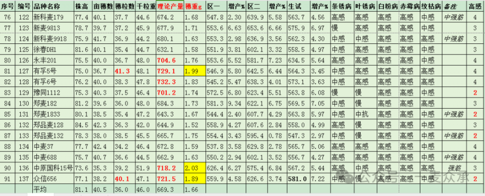 品種。其中,黃淮南片初審通過的91個小麥品種各試驗點試驗數據、匯總結果詳情。