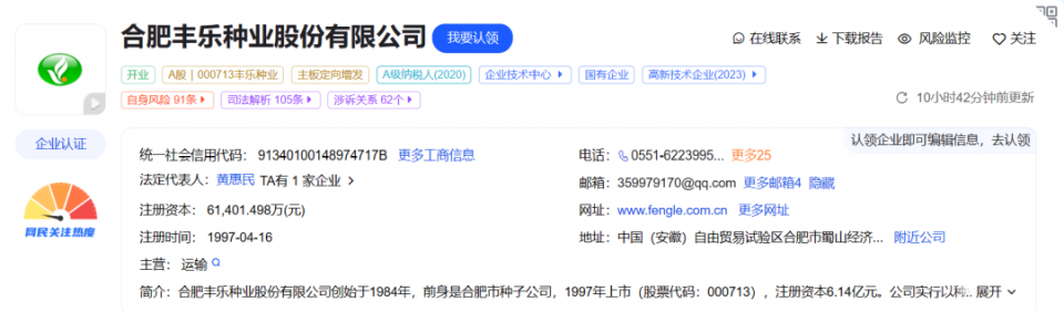 公開(kai)信息顯示,豐樂(le)種業的最大(da)股(gu)東(dong)尚未發生變更。