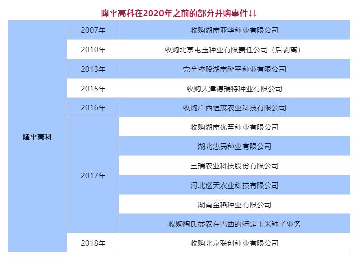 隆(long)平高科早在20世紀(ji)初便(bian)開啟并購(gou)步伐。2007年(nian)(nian),隆(long)平高科全資收(shou)購(gou)當時(shi)負債累累的(de)湖南亞華種業,后者在幾(ji)年(nian)(nian)后迅速(su)扭虧為盈。此后十多年(nian)(nian)間,隆(long)平高科透過兼并重組持續擴大業務規模。