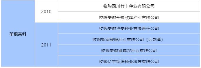 農發(fa)種(zhong)(zhong)(zhong)業(ye)(ye)大量(liang)并(bing)購區域“尖兵”。農發(fa)種(zhong)(zhong)(zhong)業(ye)(ye)全稱中農發(fa)種(zhong)(zhong)(zhong)業(ye)(ye)集團股份(fen)(fen)有限(xian)公司(si)(si),自2011年起先后并(bing)購河南黃泛(fan)區地神(shen)種(zhong)(zhong)(zhong)業(ye)(ye)有限(xian)公司(si)(si)、廣(guang)西格霖(lin)農業(ye)(ye)科技發(fa)展有限(xian)公司(si)(si)、湖(hu)北省種(zhong)(zhong)(zhong)子集團有限(xian)公司(si)(si)、山(shan)西潞玉種(zhong)(zhong)(zhong)業(ye)(ye)股份(fen)(fen)有限(xian)公司(si)(si)、江(jiang)蘇金土地種(zhong)(zhong)(zhong)業(ye)(ye)有限(xian)公司(si)(si)、山(shan)東(dong)天泰種(zhong)(zhong)(zhong)業(ye)(ye)有限(xian)公司(si)(si)、甘肅興達種(zhong)(zhong)(zhong)業(ye)(ye)有限(xian)公司(si)(si)等公司(si)(si),自此其業(ye)(ye)務涵蓋玉米、小麥、水稻等作物種(zhong)(zhong)(zhong)業(ye)(ye)。