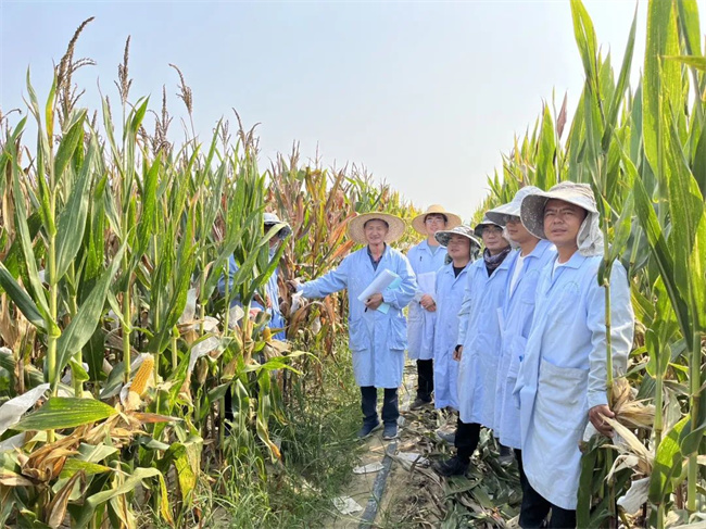 趙久然(ran)和(he)團隊在田間查看(kan)品種。