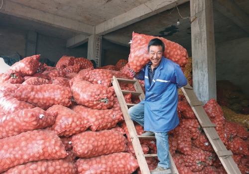 貴州省威寧縣秀水鎮前峰村馬鈴薯種薯儲存庫內,農戶正在搬運馬鈴薯種薯。