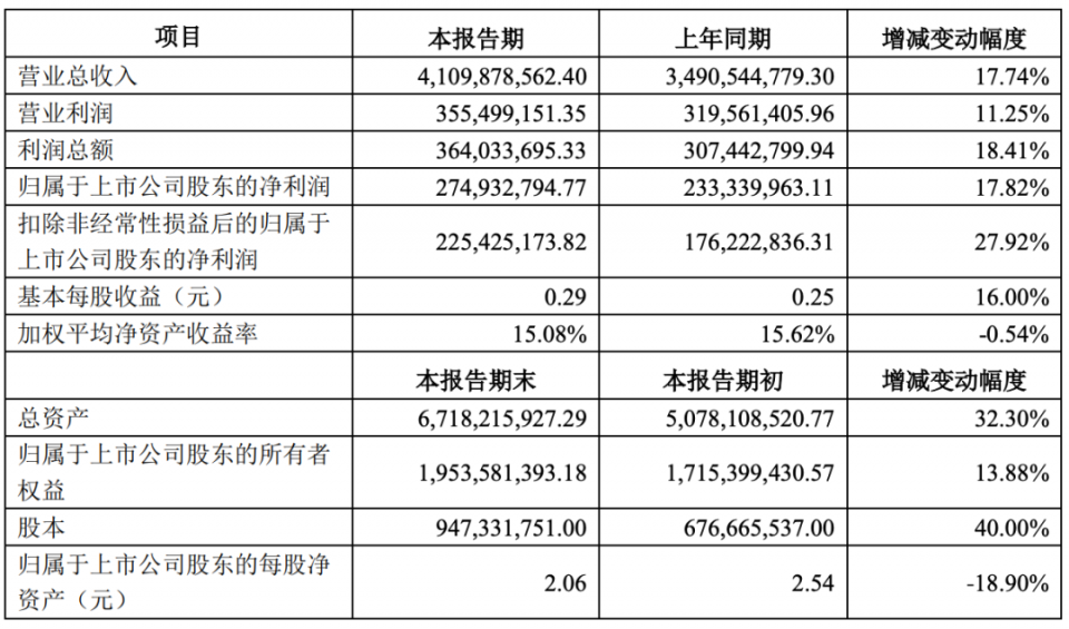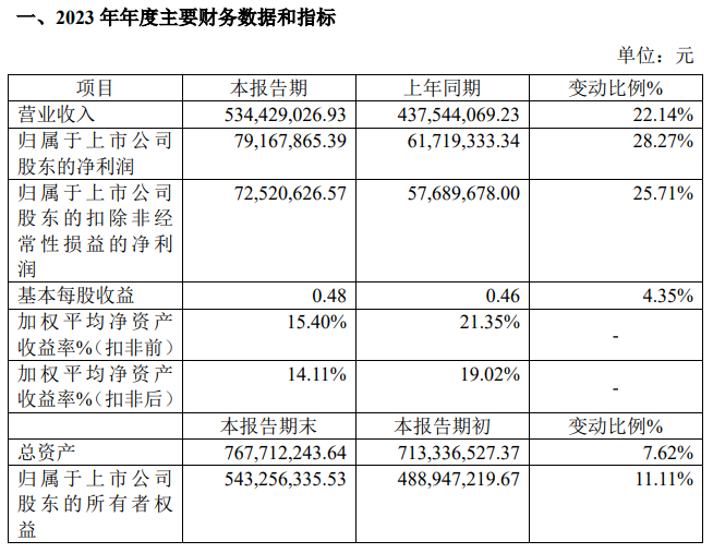根據公告,2023年度,荃銀高科實現營業總收入410,987.86萬元,較上年同期增長17.74%;營業利潤35,549.92萬元,較上年同期增長11.25%;利潤總額36,403.37萬元,較上年同期增長18.41%;歸屬于上市公司股東的凈利潤27,493.28萬元,較上年同期增長17.82%。