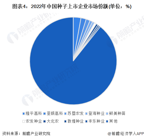 注:此處市場(chang)份額為各(ge)上市公司2022年種(zhong)業營收/2022年中國農作物種(zhong)子(zi)市值初步(bu)統計結果。