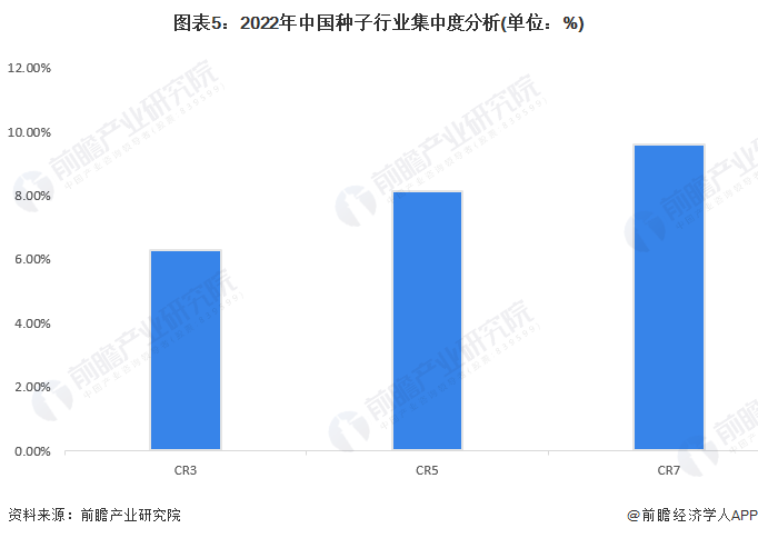 中(zhong)國種子行業(ye)(ye)集(ji)中(zhong)度較低,2022年(nian)行業(ye)(ye)前7家企(qi)(qi)業(ye)(ye)種業(ye)(ye)營收占比合計(CR7)低于10%。根(gen)據Kynetec統(tong)計數據,早在2020年(nian),全球種業(ye)(ye)中(zhong)前5名企(qi)(qi)業(ye)(ye)市場份額合計已經達52%。而在2022年(nian),中(zhong)國種子企(qi)(qi)業(ye)(ye)集(ji)中(zhong)度和全球市場比仍有較大的差距(ju),行業(ye)(ye)競爭(zheng)分(fen)散局面仍未(wei)改變。