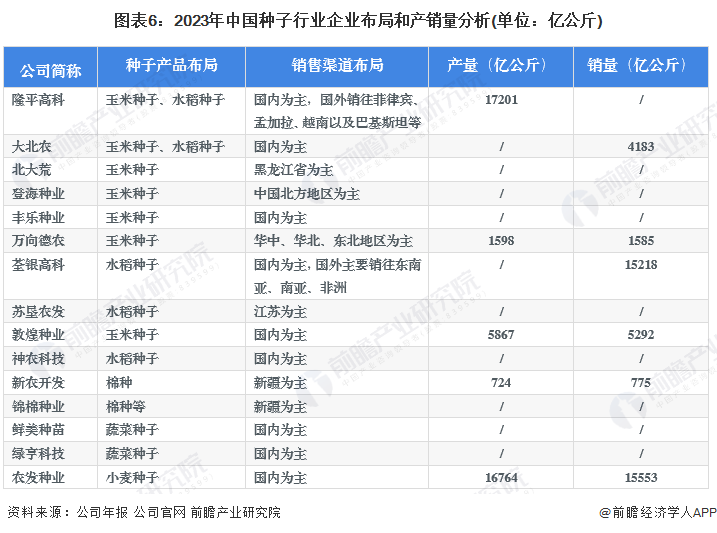 5、中國種子行(xing)業企業布局及產銷量分析(xi)