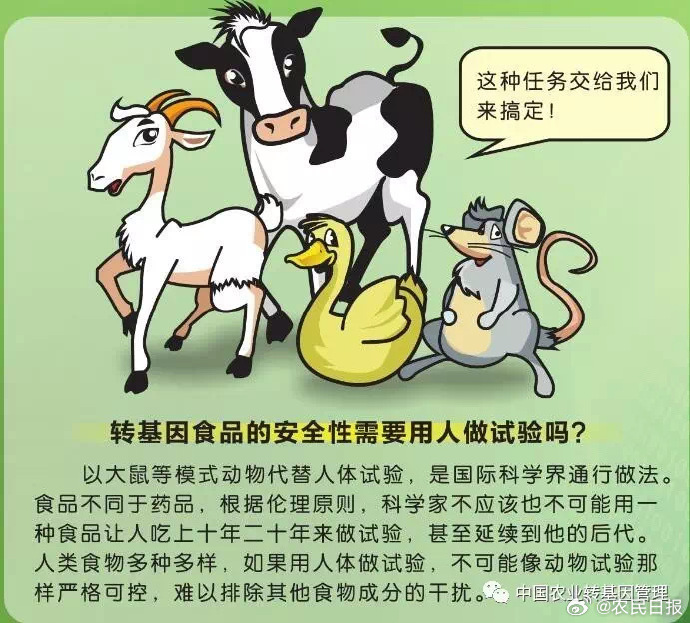 作物,人能吃嗎?動物或人在食用轉基因食品后,自身基因會改變嗎?長期吃轉基因食品會不會有問題?轉基因食品的安全性需要用人做試驗嗎?轉基因安全性有定論嗎?看下圖了解詳情。