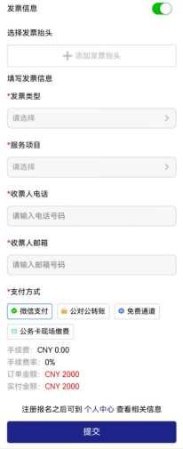 4.填寫發票信息,并選擇支付方式付款,提交后完成注冊。