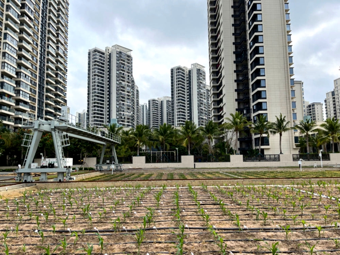 三亞崖州灣科技城是南繁硅谷培育新質生產力的主陣地,育種新技術加速運用,推動更多“好種子”落地。在國家南繁作物表型研究設施里,近5畝試驗田種著1000多份玉米、大豆育種材料。高5.7米、長21米的高通量植物表型平臺沿軌道運行,運用激光雷達、高光譜相機、深度相機、各種傳感器,為育種材料進行“全身體檢”。采集數據實時回傳,科研人員直接在電腦上處理、分析數據。